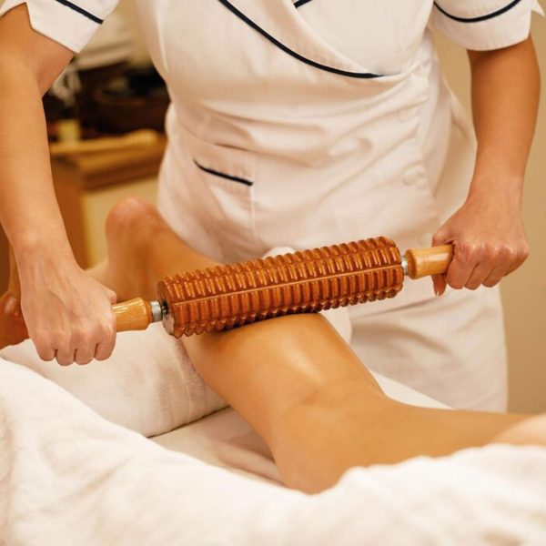 Tratamiento corporal que utiliza herramientas de madera para moldear, tonificar y reducir la grasa localizada, mejorando la circulación y disminuyendo la celulitis en solo 5 sesiones.